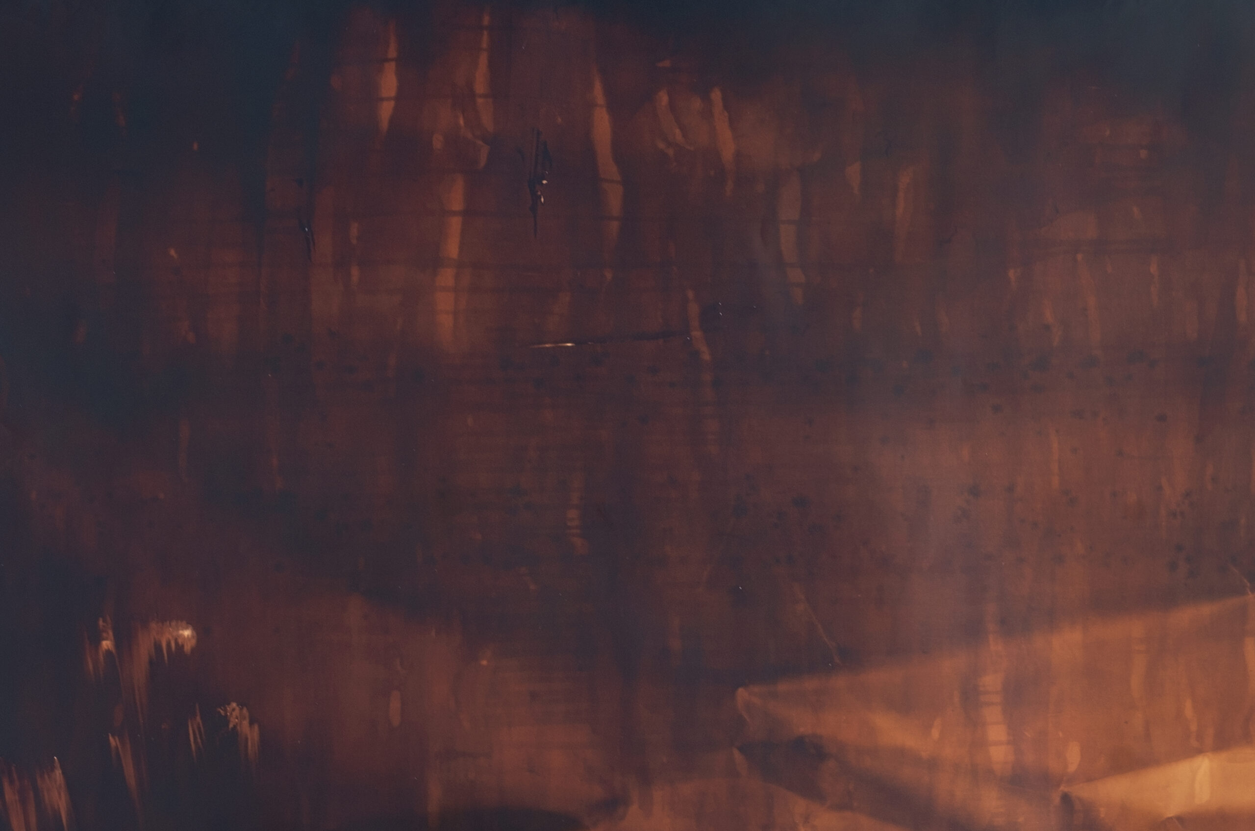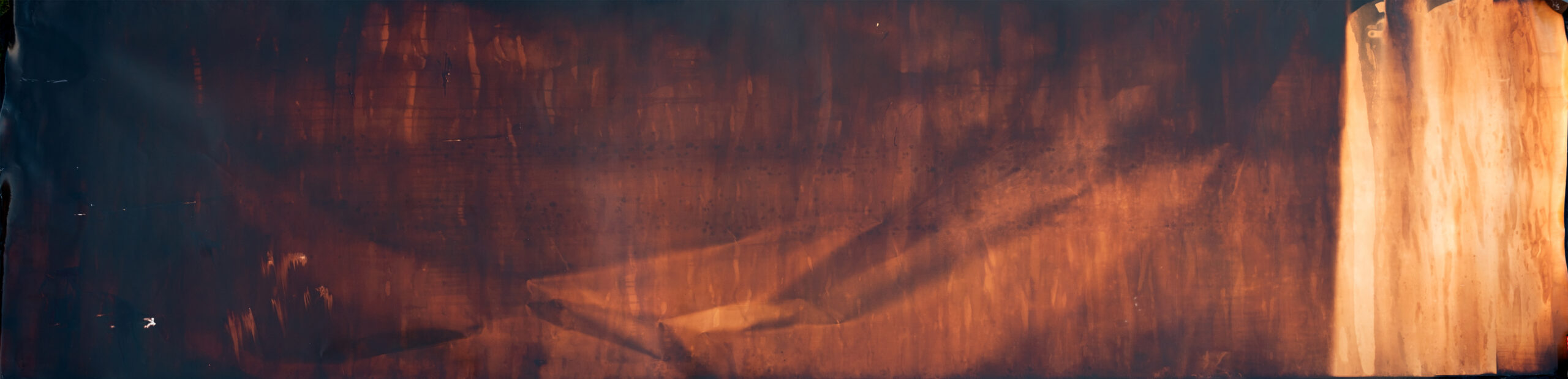 Several grimoires provide procedures for calling a spirit to show itself within an object – often a crystal (ex. Johannes Trithemius: The Art of Drawing Spirits into Crystals) Rather than use a crystal, I provided the receptive media of analog photographic paper. The result is a massive, unique photographic image filled with unexpected variations, textures and color gradations.